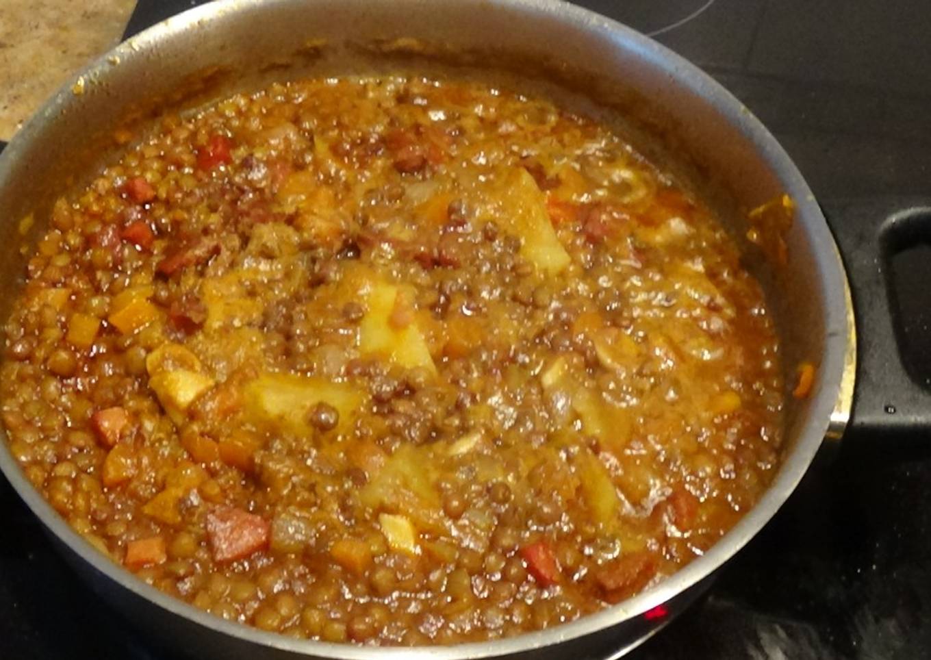 - 400 gramos lentejas, curry