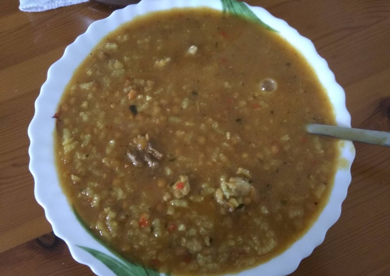 Instructions to make to make Lentejas a lo pobre con pollo y arroz PICANTE