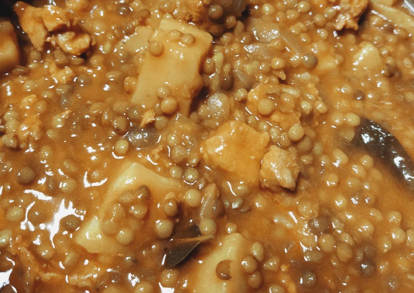 Guiso de lentejas con patatas y carne adobada