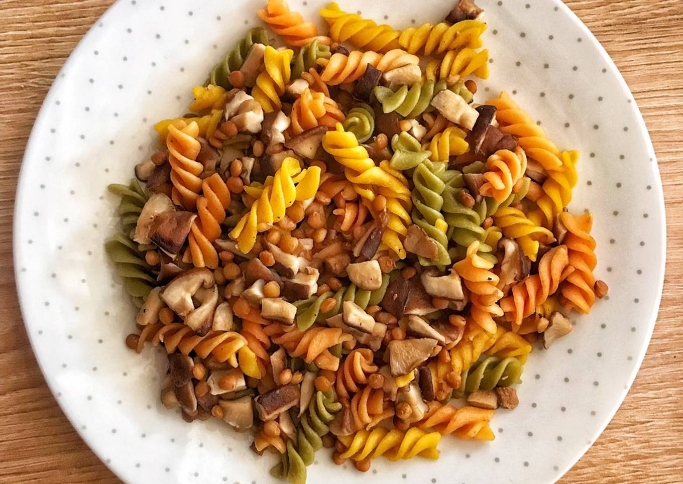 Instructions to make to make Pasta con setas shiitake y lentejas π