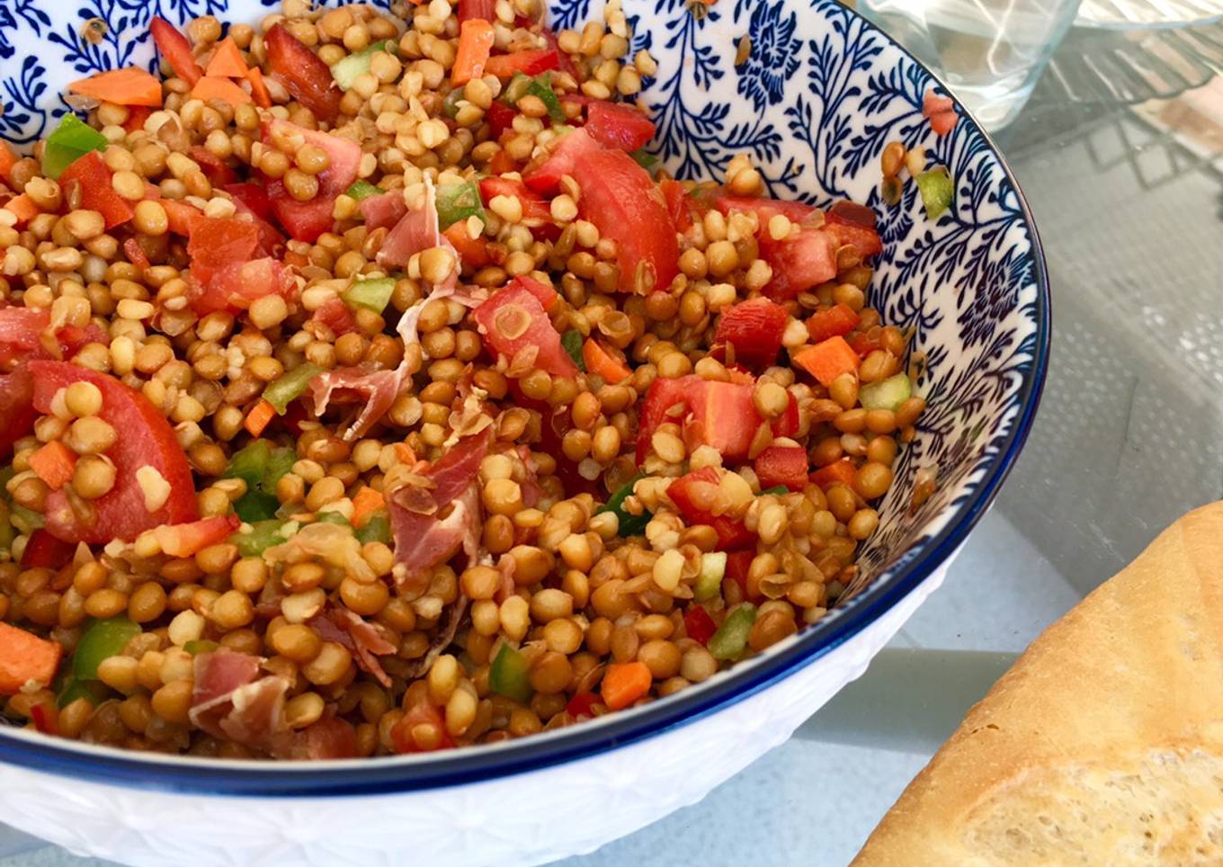 Ensalada de lentejas y jamón serrano