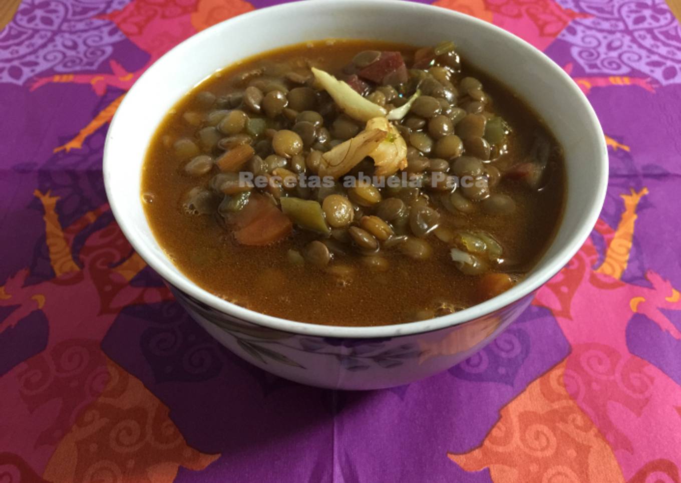 - Servimos las lentejas calientes y por encima los ajos fritos. Deliciosa!!