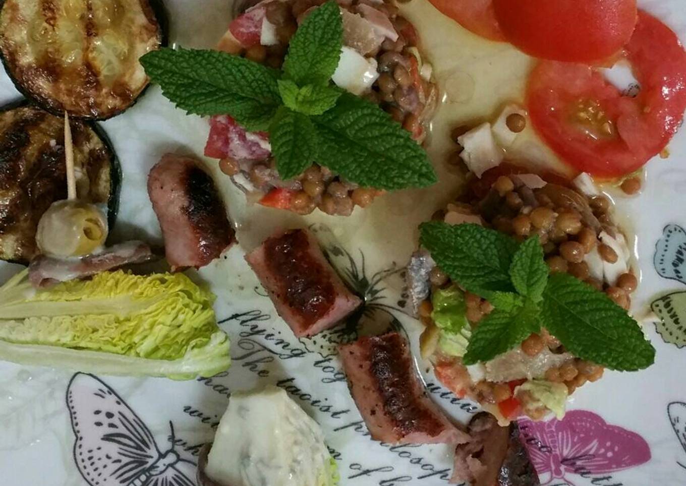 - Cogemos la ensalada de lentejas y lo ponemos en un molde pequeño para adornar