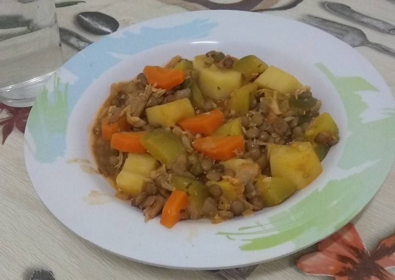 - Agregar el pollo, las lentejas y dejar cocinar unos minutos más. Luego añadir el zapallito y cuando esté blando apagar el fuego!