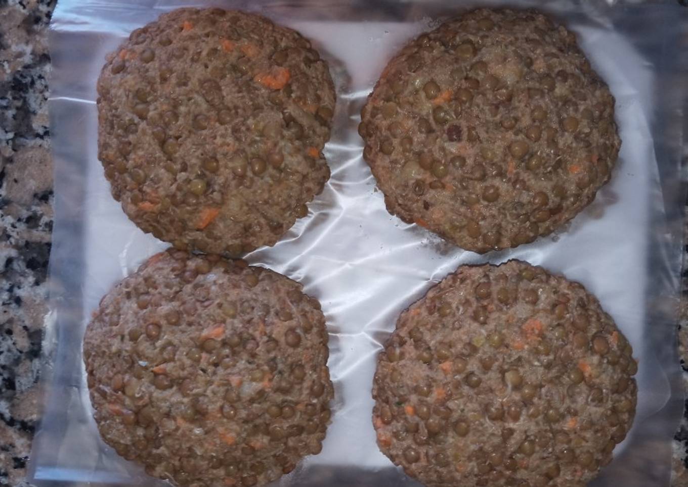 - Las lentejas crudas las pones en agua unas 8 hs aprox, luego las enjuagas y las pones a hervir hasta que se ablanden un poco. Después si tenés una procesadora procesas 200 gr de lentejas junto con zanahoria, ajo, cebolla..