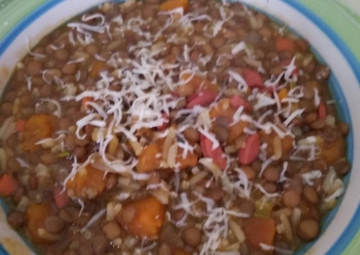 Muy ricas, muy ricas lentejitas con Longanicilla y queso rallado encima! 😋