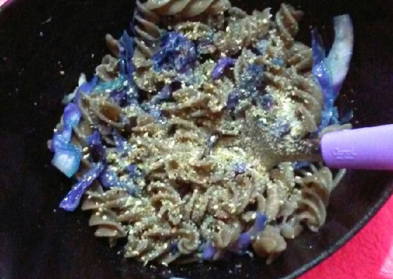 Fideos de lentejas con repollo al vino blanco💜