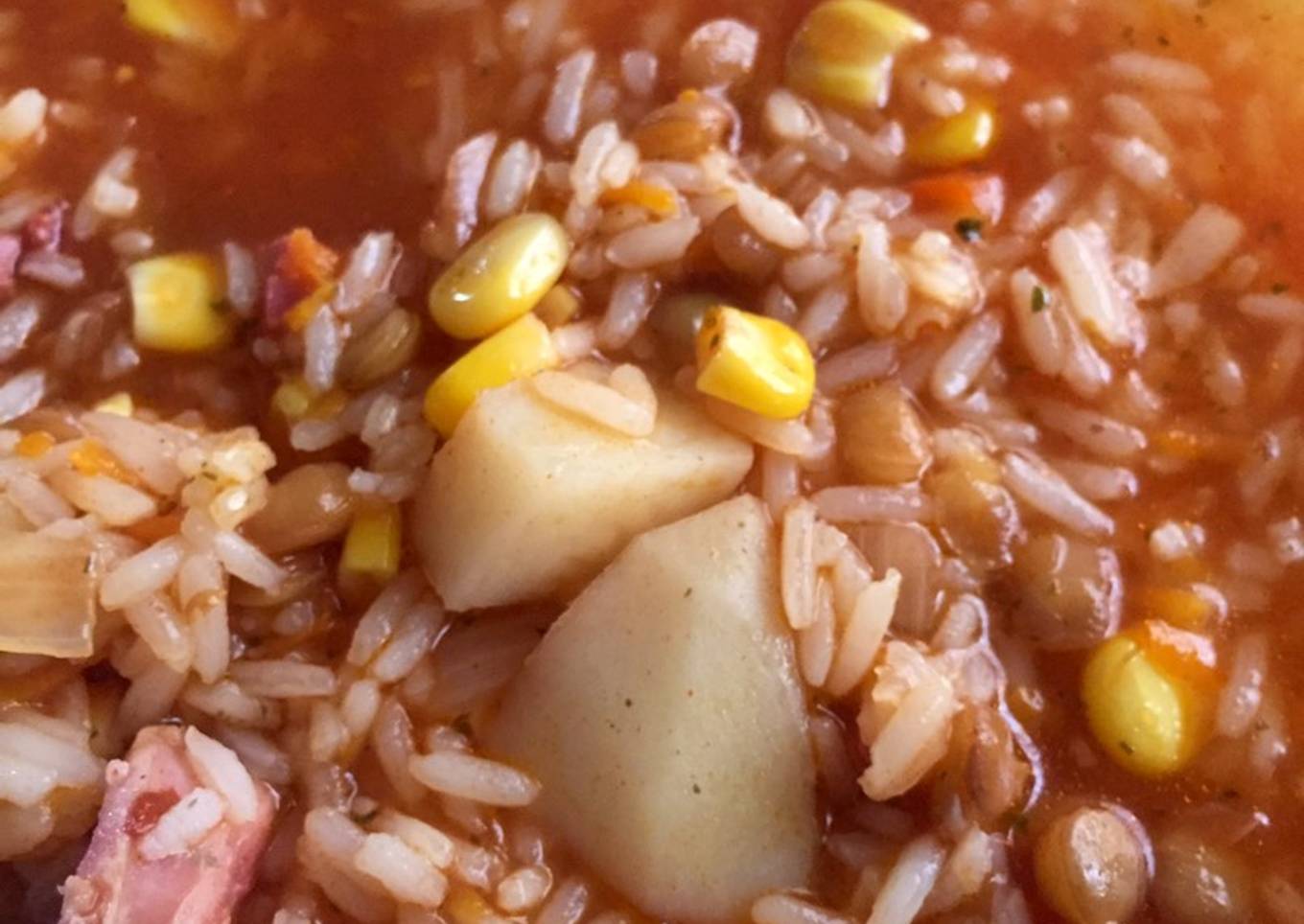 Guiso de arroz con lenteja y choclo