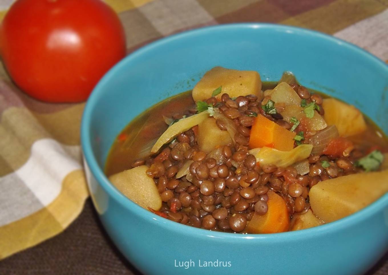 Las lentejas deben quedar blandas pero no deshecha para que no parezca un potaje. La manera de controlarlo es cocinar las lentejas por separado y agregarlas al guiso una vez que la papa esté casi lista.