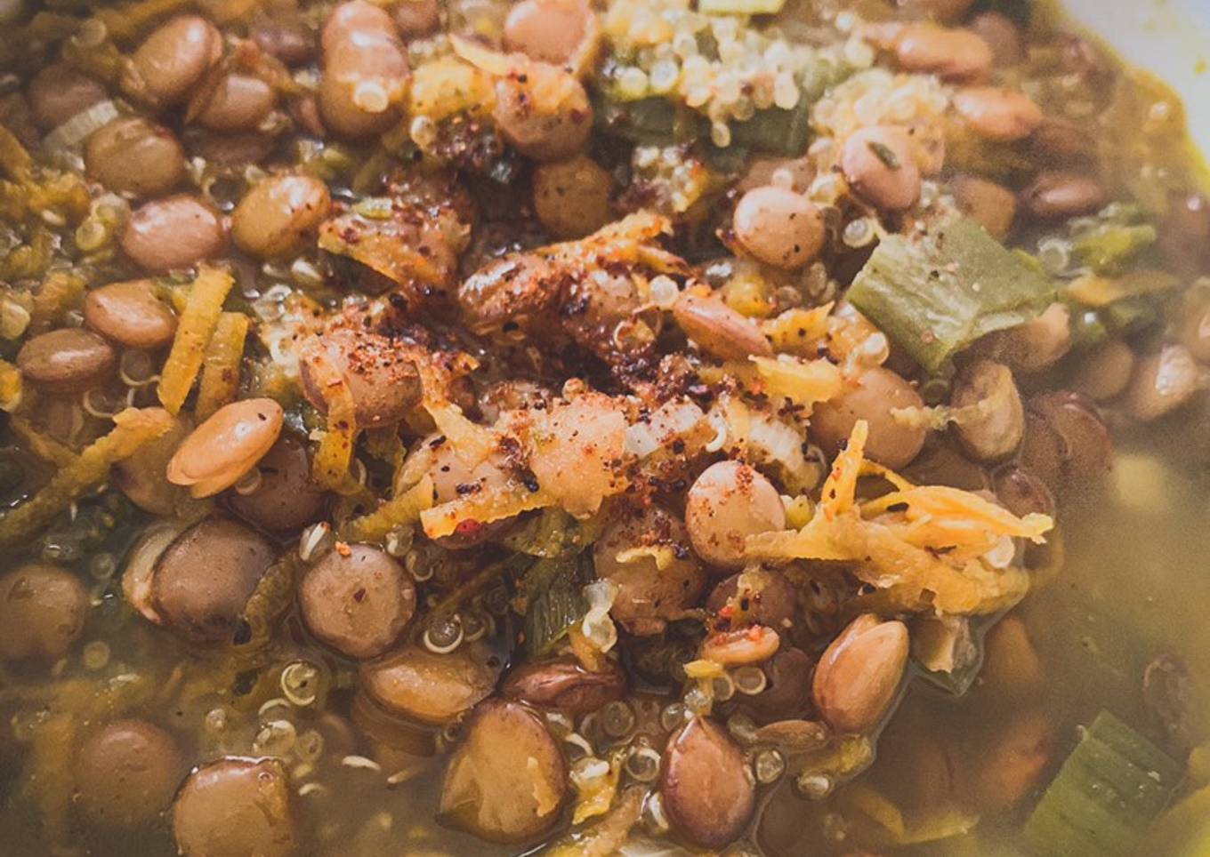 - Agregar la quinoa, el sofrito a la olla de las lentejitas y dejar por 20 min a fuego lento, dejar reposar 5 min y listo! π