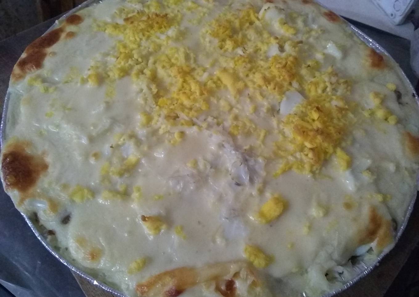 - Colocar la salsa sobre la superficie del puré de papas. Colocar fetas de queso y dejar un poco para la última superficie. Tapar con la otra parte del puré de papas y arriba rallar o decorar con queso y huevo duro! Fácil y rico. Que disfrutes!