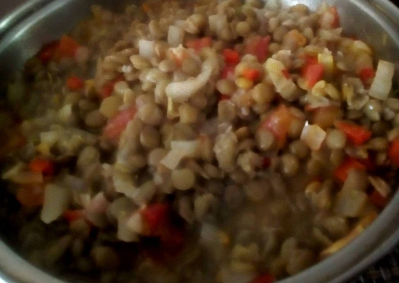 - Añadir las lentejas con tres tazas de agua con el cubito maggui, se prueba sabor : se agrega más sal, si lo vemos conveniente. Se deja tapada la olla, a fuego lento por 20 minutos. Listo!! Esto fue todo... Se sirve caliente, se acompaña de arroz blanco, más proteína si se desea, ensalada y jugo...