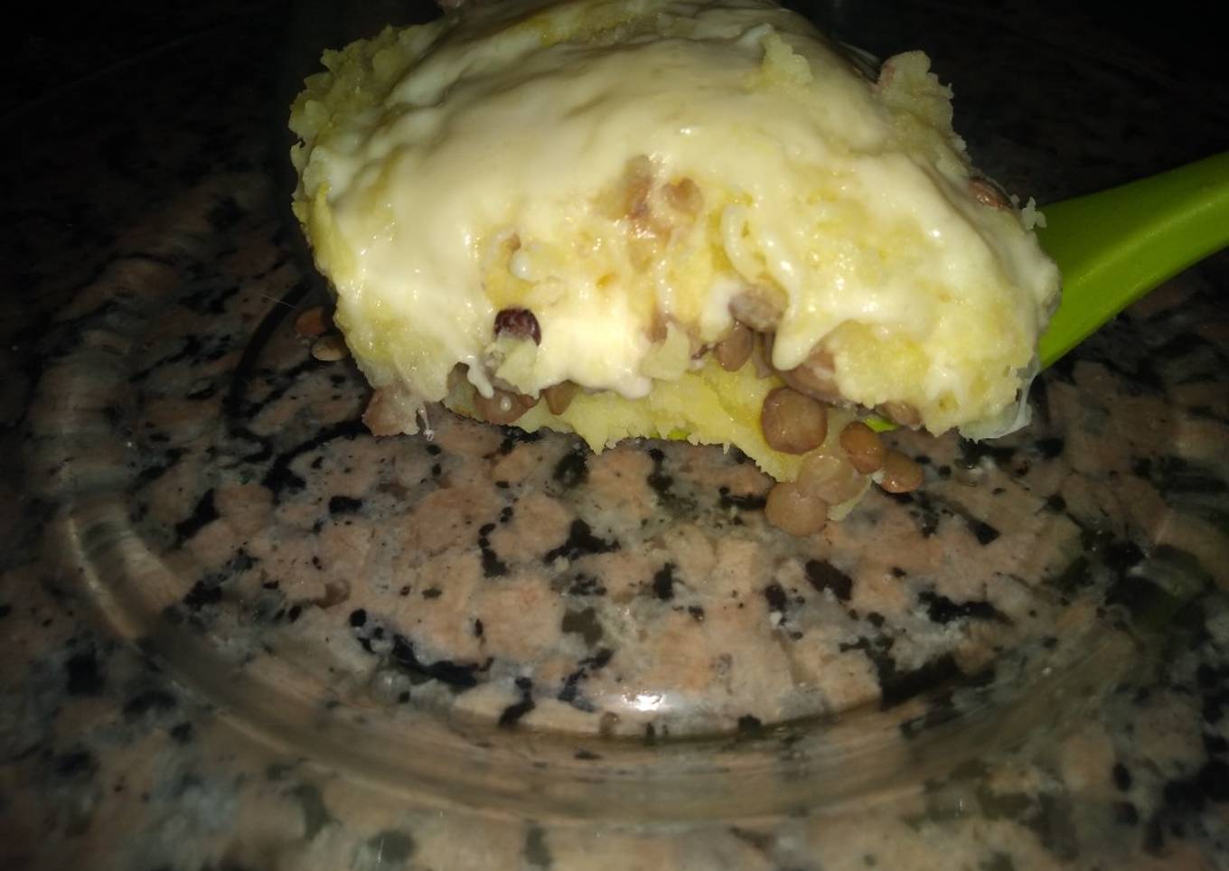 Pastel de papa con lentejas